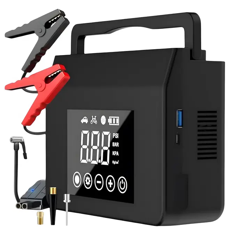 路銆?/span>WHAT YOU GET銆?1 x Smart Air Pump, 1 x Air Tube(60cm/23.6in), 1 x Inflating Needle, 1 x Inflatable Nozzle, 1 x Pesta Valve, 1 x Emergency Start Power Clip, 1 x Type C Cable, 1 x User Manual. 18 months warranty and lifetime tech support. If you have any after-sales questions about jump starter, please feel free to contact us.Note: Please do not use the air pump function continuously over 6 minutes. When the tire battery compressor is seriously hot, please cool down for a few minutes before continuing to inflate the tire.