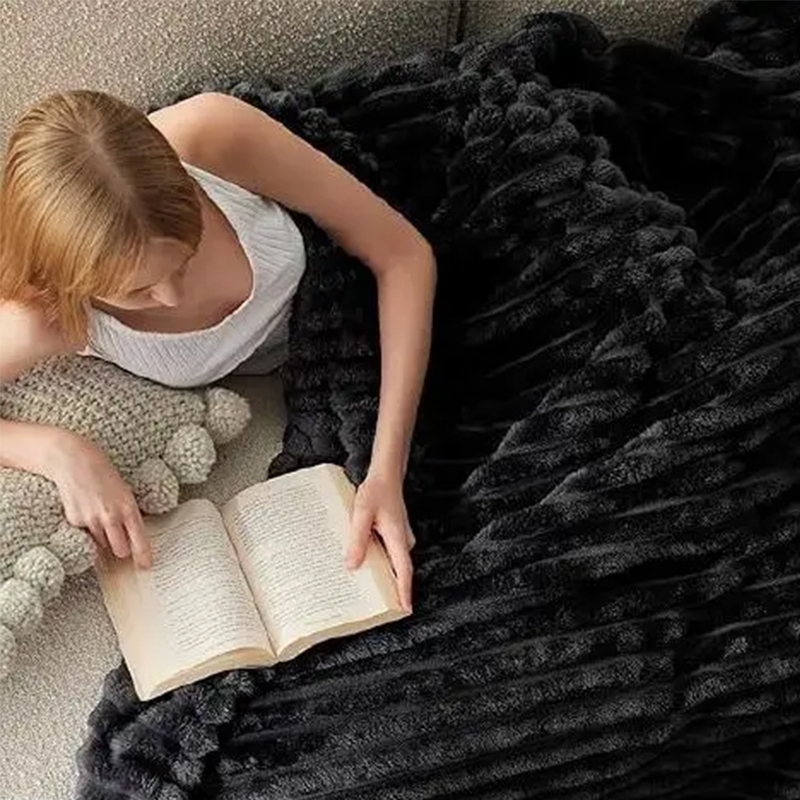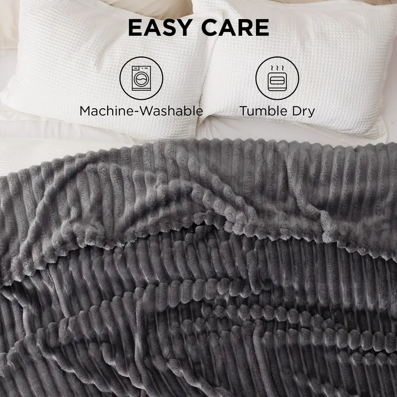路Exquisite Textures: This fuzzy blanket features a classic stripe pattern that creates an underlying unity to coordinate with your room’s decor.