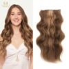 24 Inches Invisible Clip- in Synthetic Hair Extensions Thick Natural Hairpieces Double Weft 4/3/2 Secure Clips Long Wavy Secret Hairpiece for Women