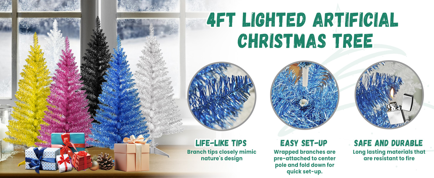 - NATURAL LIFELIKE APPEAL: The 4ft white Christmas Tree with 122 PVC Branch Tips, which are very vivid and beautiful when fully unfolded. You can put this illuminated Christmas tree anywhere, such as the living room, garden, bar, hotel, supermarket or any other place. It is suitable for indoor and outdoor Christmas and halloween decoration.