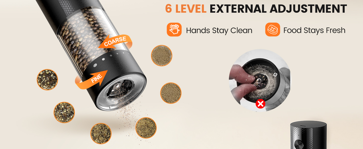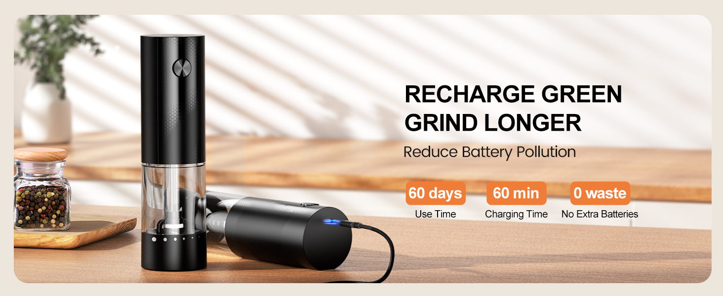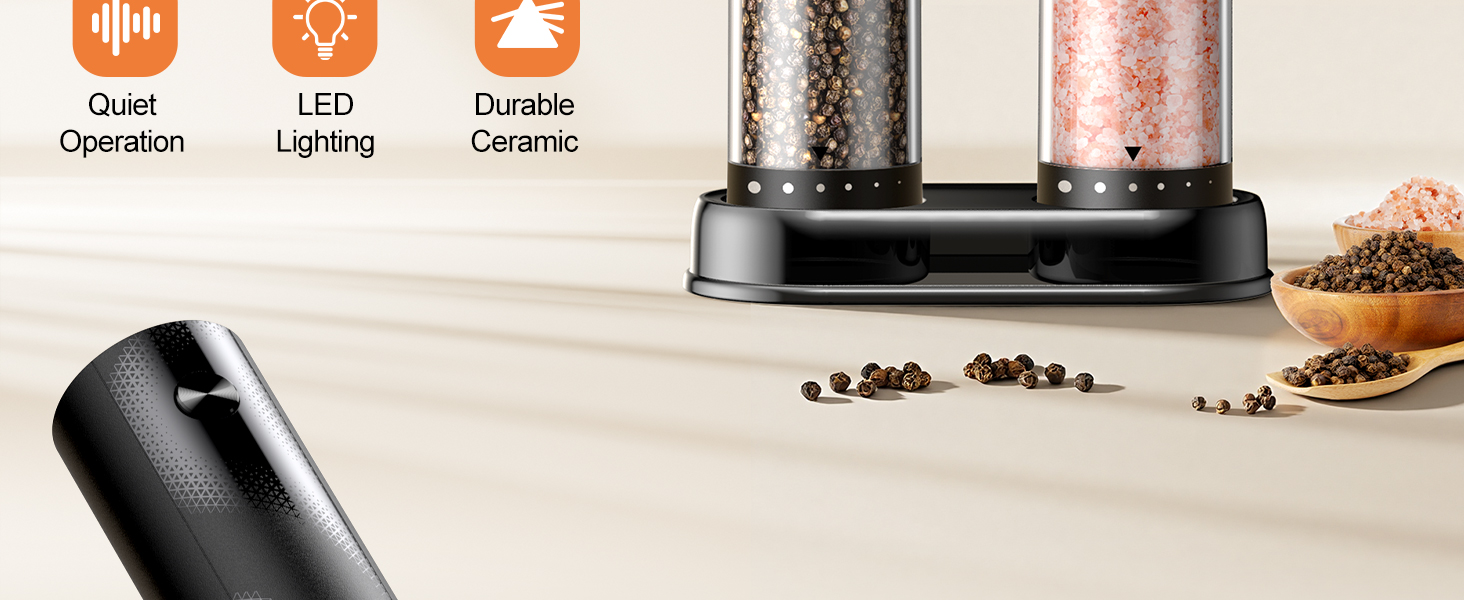 Electric Salt and Pepper Grinder Set – Rechargeable Automatic Salt and Pepper Shakers, Kitchen Appliances with External Adjustable Coarseness, Larger Hopper for Cooking, Home Gifts(2 Pack,Black/Black)