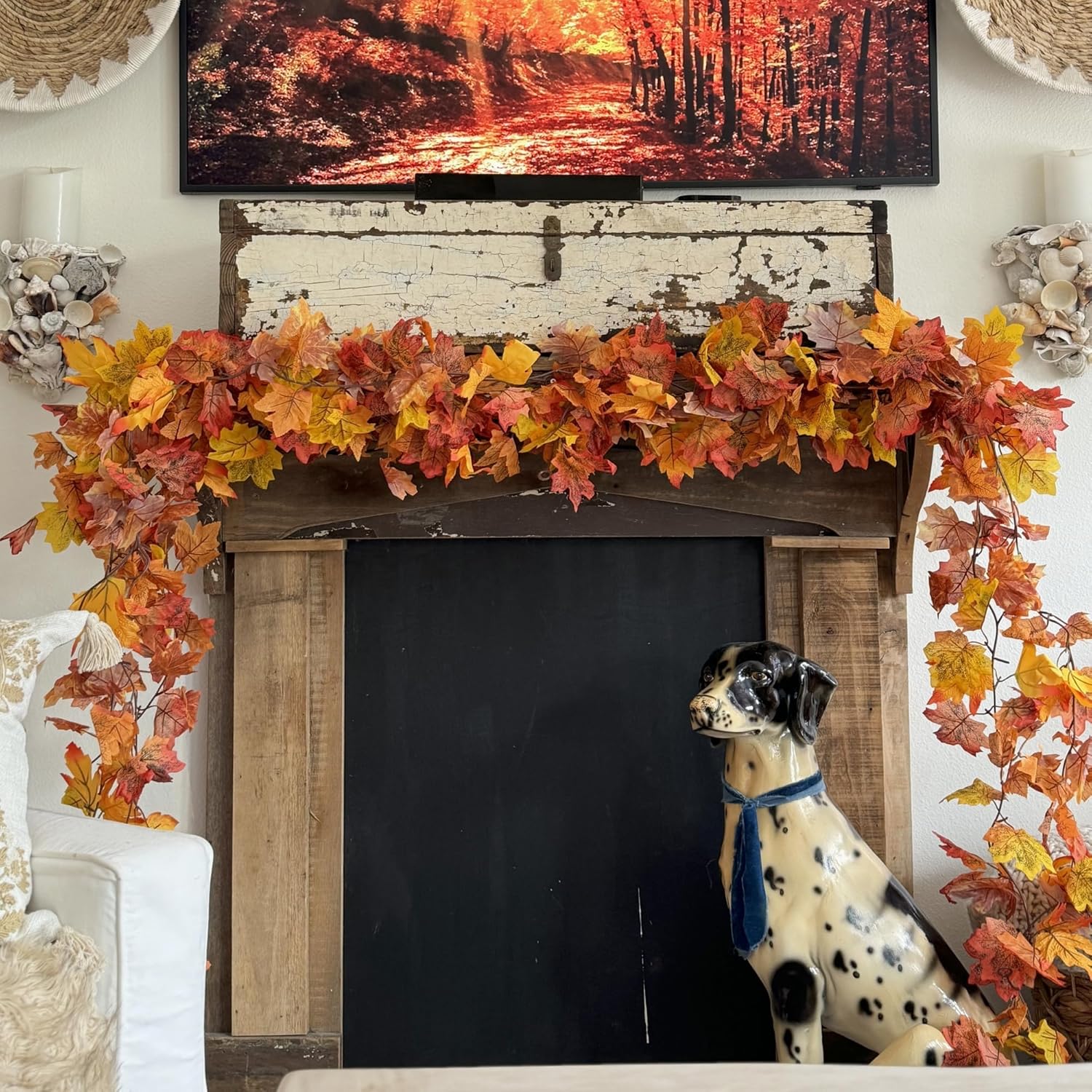 6 Pack Fall Leaf Garland, Total 35Ft Artificial Maple Leaf Autumn Garland Fall Leaves Hanging Vines Fall Maple Leaves Thanksgiving Decor for Home Wedding Fireplace Party