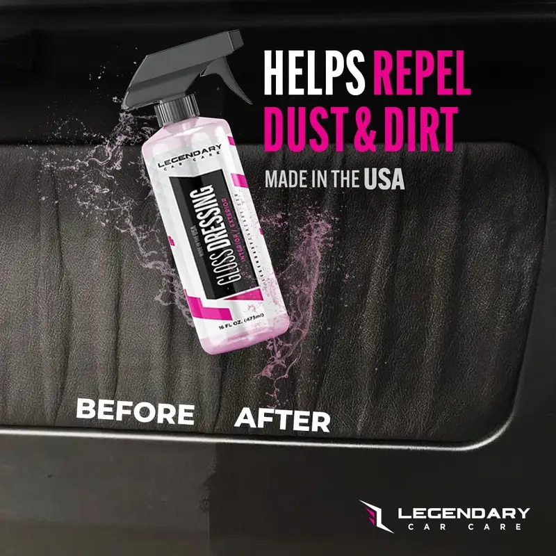 This all-in-one Gloss Dressing treatment leaves your interior & exterior plastics, rubber, tires & vinyl looking luxuriously bold and bright.