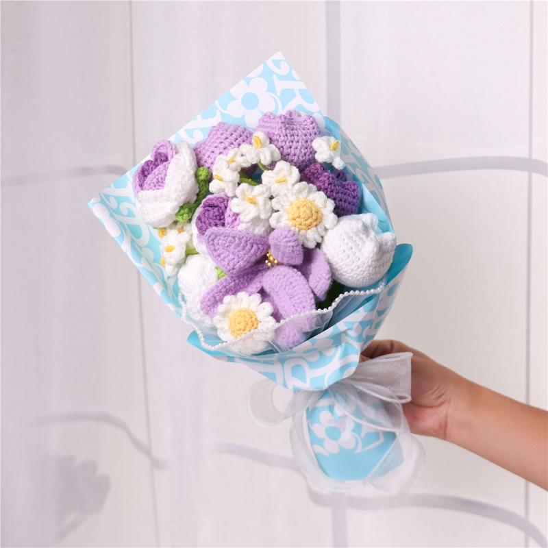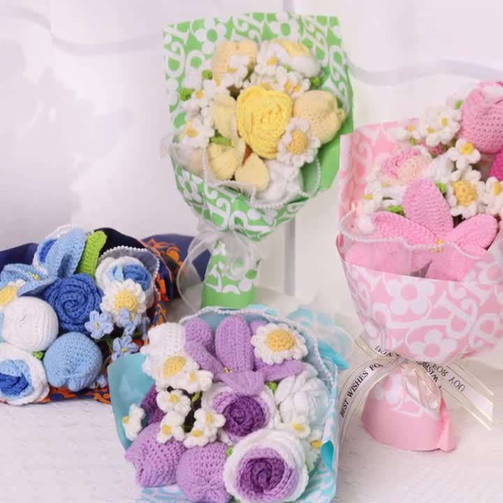 Handmade Knitted Crochet Flower Bouquet, 1 Bunch Artificial Flowers for Home Decor, Parties, Weddings & Anniversaries 鈥?Perfect Valentine鈥檚 Day, Birthday, Mother鈥檚 Day, Father鈥檚 Day & Thanksgiving Gift, Decorative Artificial Flower Set