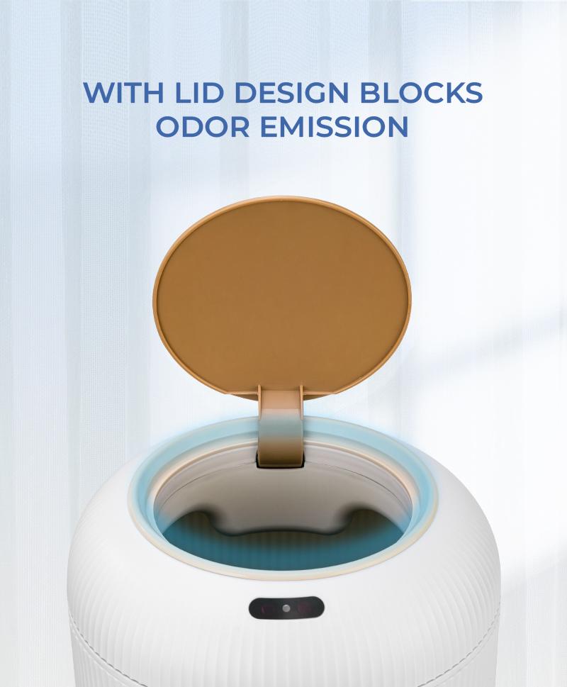 路Motion Sensor Trash Can: Uses advanced automatic sensing technology for a comfortable user experience. Lid stays open with hands around the infrared motion sensor and closes automatically after 5 seconds if no movement is detected.