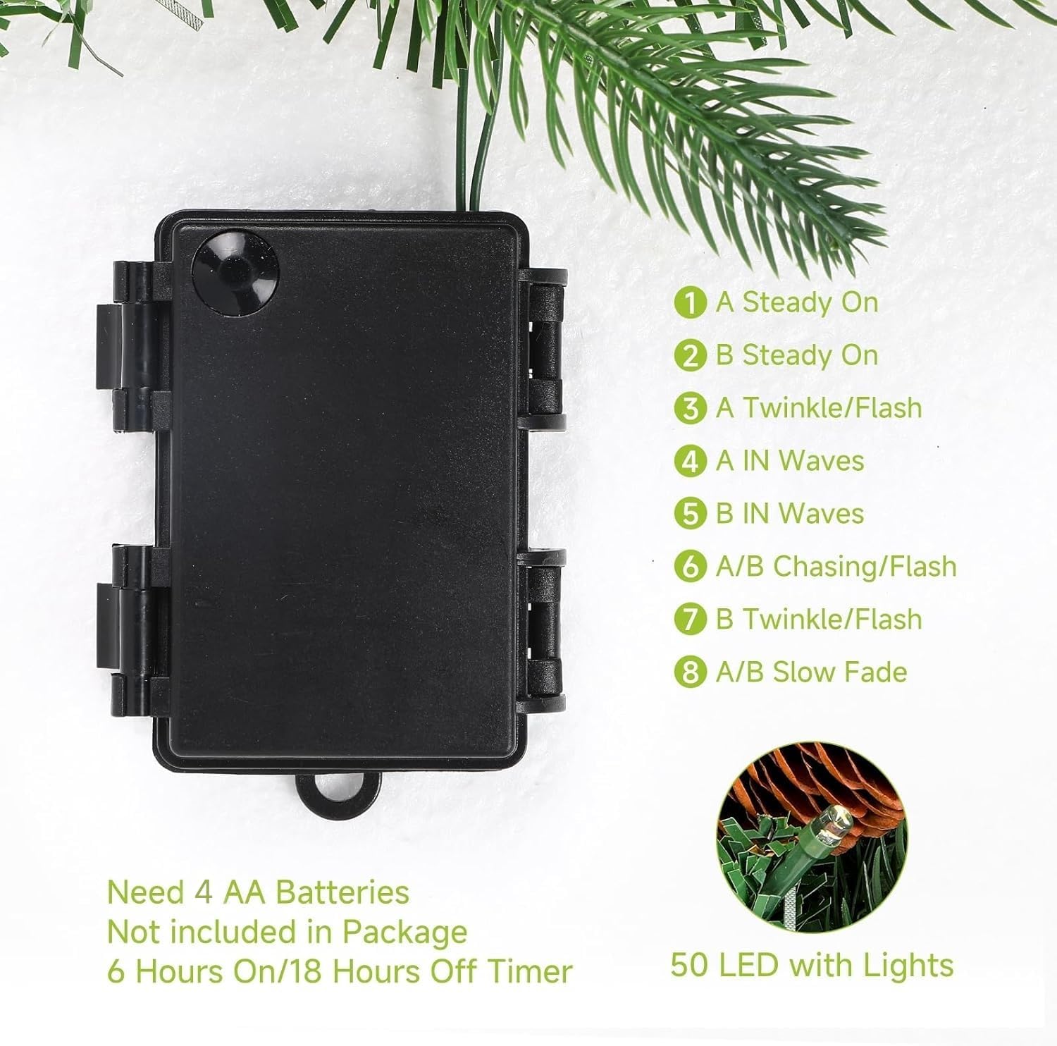 銆?/span>8 Different Lighting Modes銆?/span>Choose from flashing, twinkle, waves, sequential, slow glow, chasing, slow fade, and steady on for your pre lit christmas garland. There’s always a mode that suits your mood, adding more joy to your celebrations.